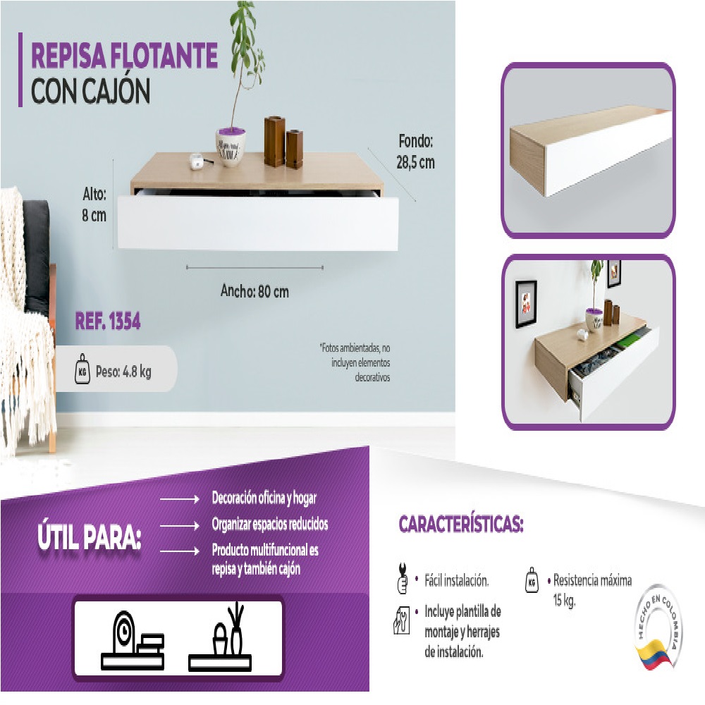 REPISA   FLOTANTE  CON  CAJON - Imagen 5