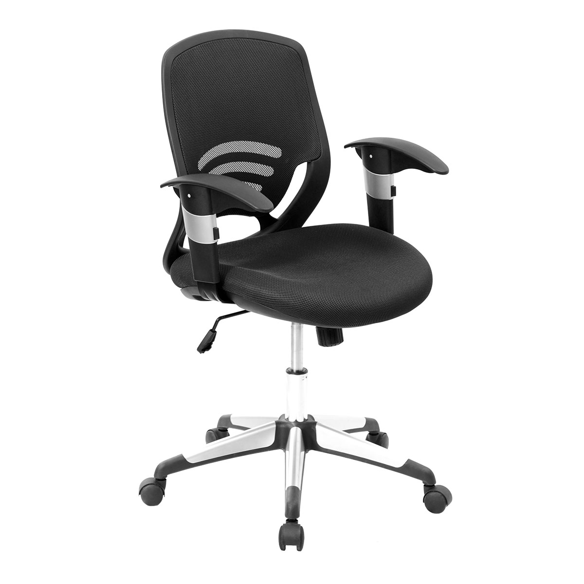 Dimensiones: 48 cm de ancho x 50 cm de profundidad.       Brazos: fijos en polipropileno color negro.
