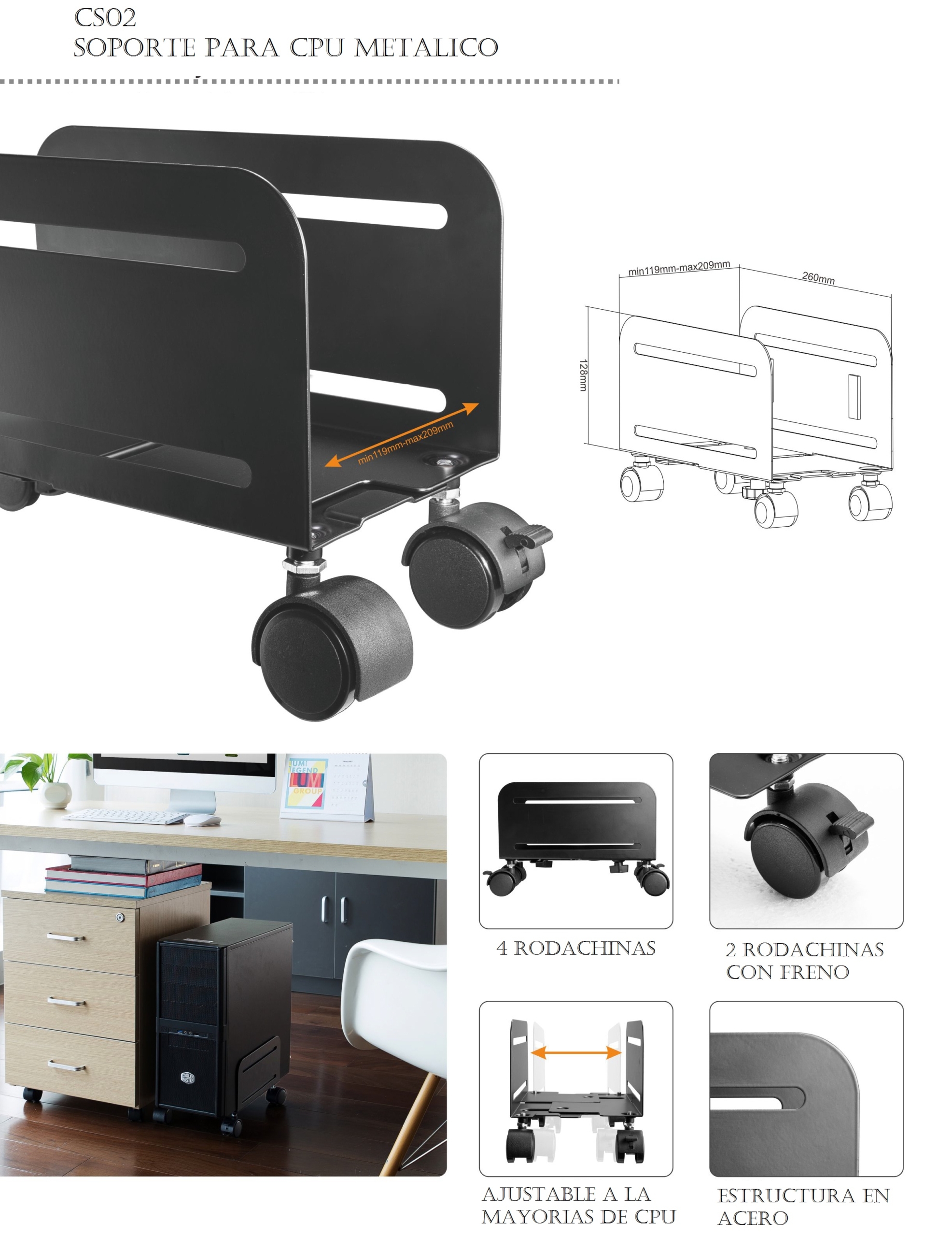 2 frenos incorporados para estabilidad de las ruedas.