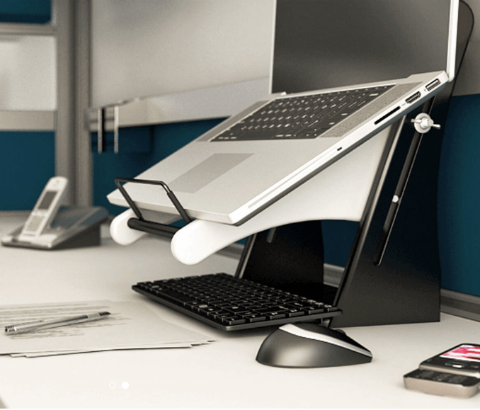 Diseñado para prevenir lesiones de cuello por uso prolongado del computador portátil.