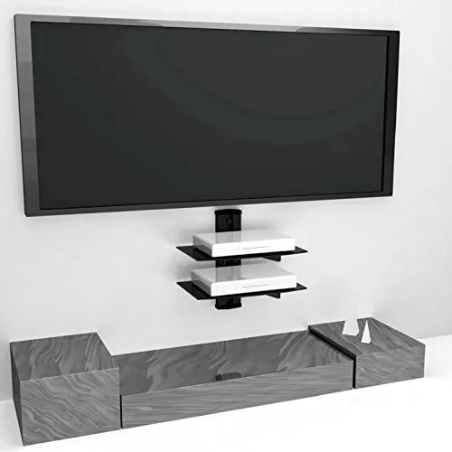 Estantería flotante WALI con vidrio templado reforzado para reproductores de DVDCajas portablesConsolas de videoTV Accesorios CS202 2 Estante negro