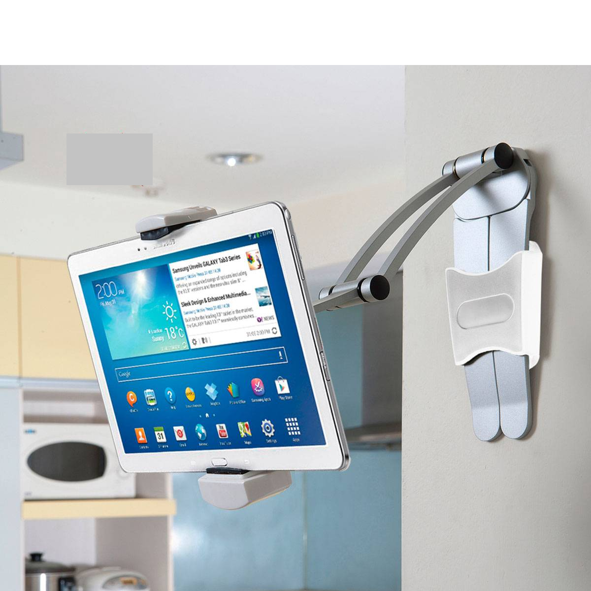 El elegante cuerpo de aluminio se pliega compacto para un fácil almacenamiento y portabilidad, mientras que ofrece una gran estabilidad a tu tableta. Perfecto para tu escritorio de pared de la clase o debajo de tu encimera de cocina.