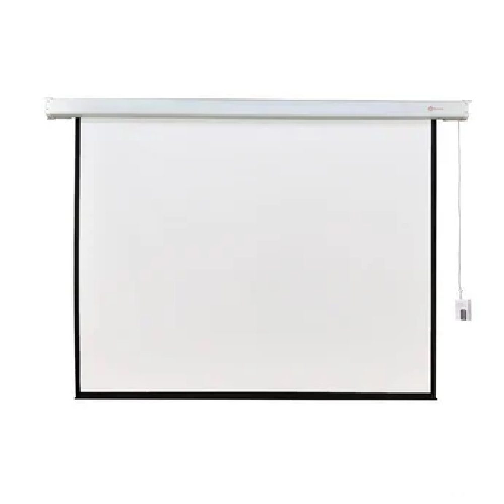 Telón motorizado para video beam con medidas de 153 x 153 cm, de forma cuadrada fabricado en lámina de acero cold rolled, y su tela de alta resistencia, cuenta con un control inalámbrico, adecuado para instalar en espacios reducidos, por ejemplo en oficinas o salones audiovisuales.